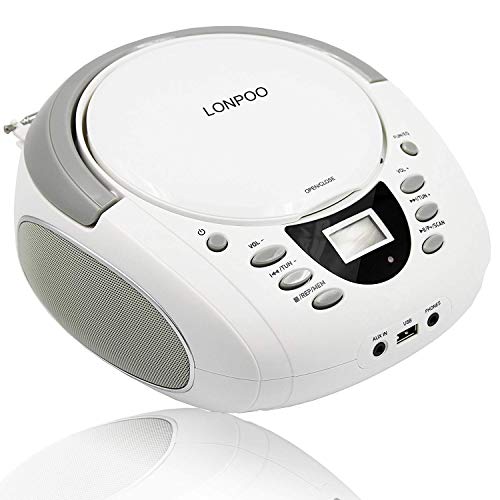 AUNA Roadie - Poste CD Enfant Lecteur CD Enfant Lecteur CD Port USB MP3 Tuner Radio AMFM Bluetooth 21EDR Entrée RCA-AUX-Jack 35 mm Éclairage LED Multicolore 2x15W RMS - Blanc.